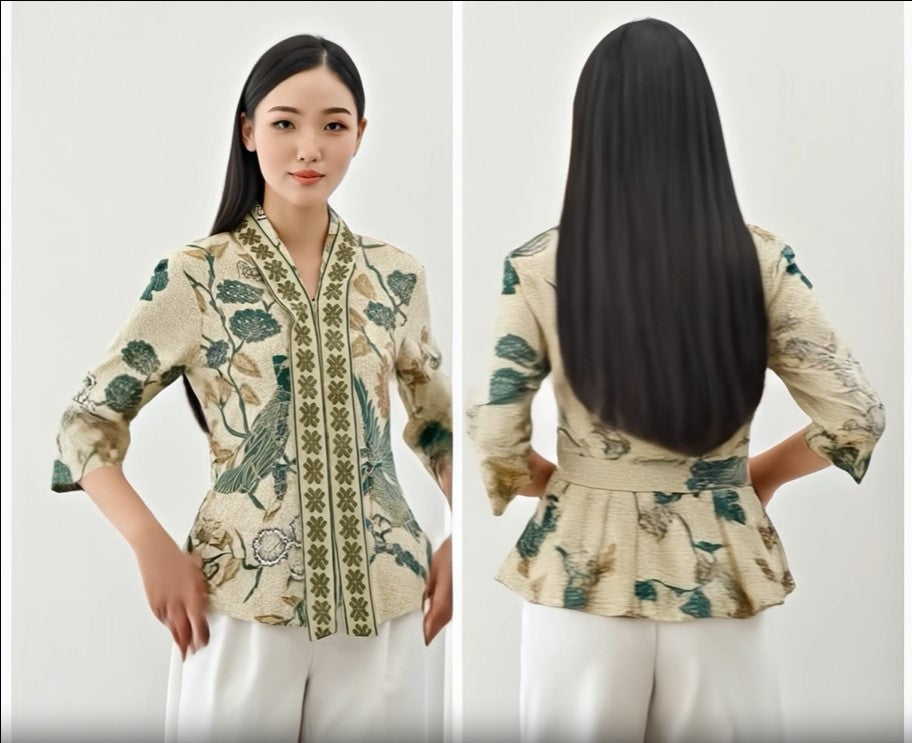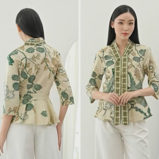 Batik Singapore introduces the Peony Bird Paradise Batik Kimono. This international bestseller showcases the finest batik craftsmanship with its detailed peony and bird motifs, creating a perfect harmony of Eastern and Western aesthetics. The sophisticated peplum cut with three-quarter sleeves flatters all body types, while the mandarin collar adds timeless charm.
